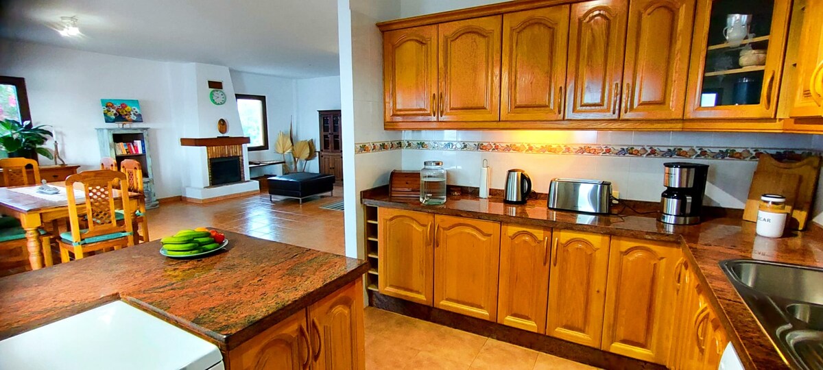 You rent an entire, spacious house (150 sqm) in a quiet location on a large property. It is in a quiet location and within walking distance of a swimming spot (Pozo de las Calcosas). It has a beautiful terrace with magnificent views of the ocean and also a roof terrace, a conservatory, etc. You will enjoy the stay