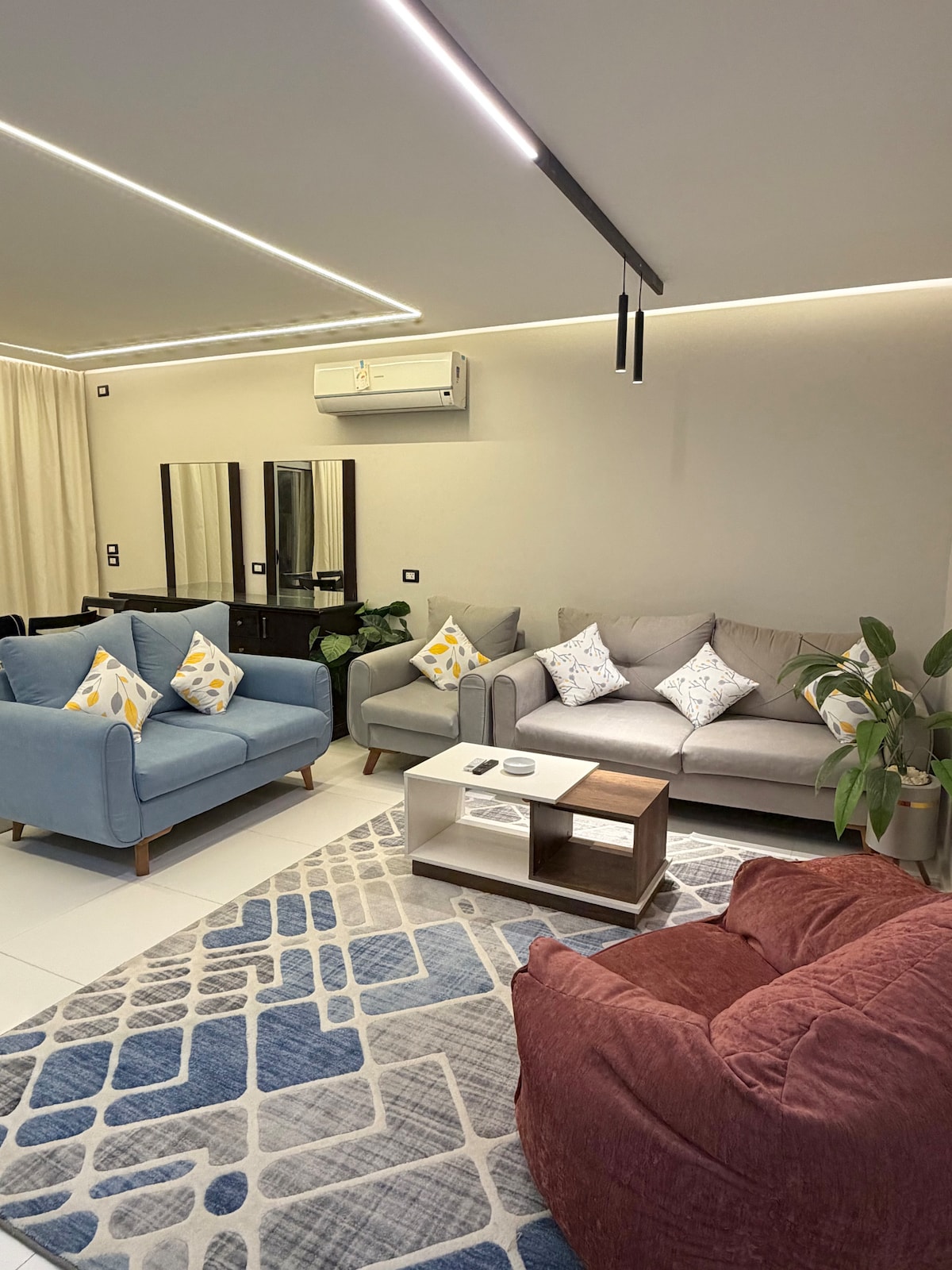 Two Bedrooms Apartment located in New Cairo. A very modern theme in the heart of New Cairo. Complimentary housekeeping is provided on the 7th day for stays of a full week. Additional housekeeping can be arranged via Airbnb messaging for an extra fee. Netflix and free Wi-Fi.