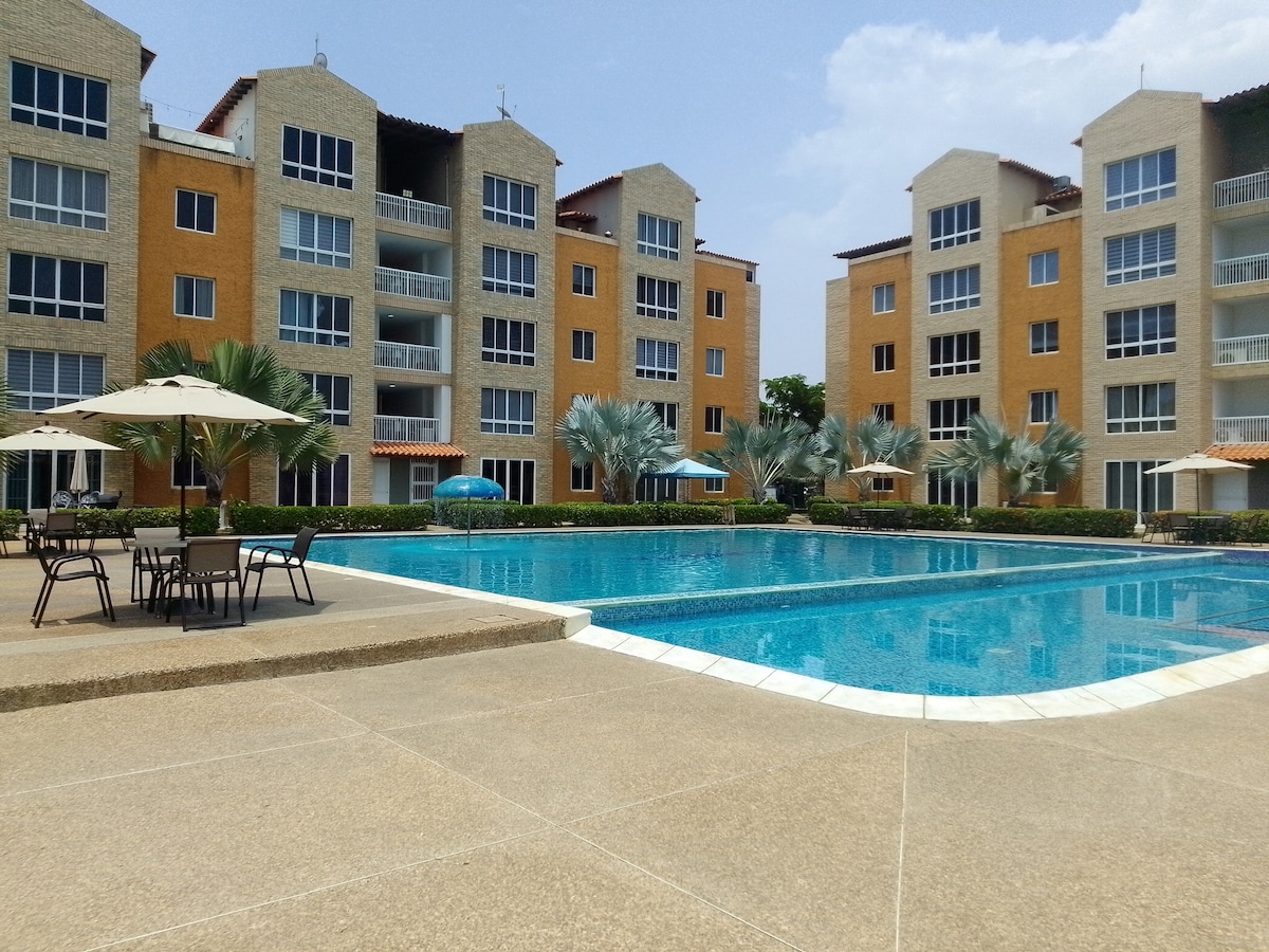 🌴 Experience Lechería in style: your home facing the canal 🌊 Relax in a spacious and modern apartment with two bedrooms and two full bathrooms, ideal for families, couples or travelers looking for comfort and tranquility. Enjoy a spectacular view of the canal and pool, direct access to a private boat dock, and all this just a 7-minute drive from the best beaches in the area. High-speed WiFi, air conditioning, equipped kitchen and 24-hour security.