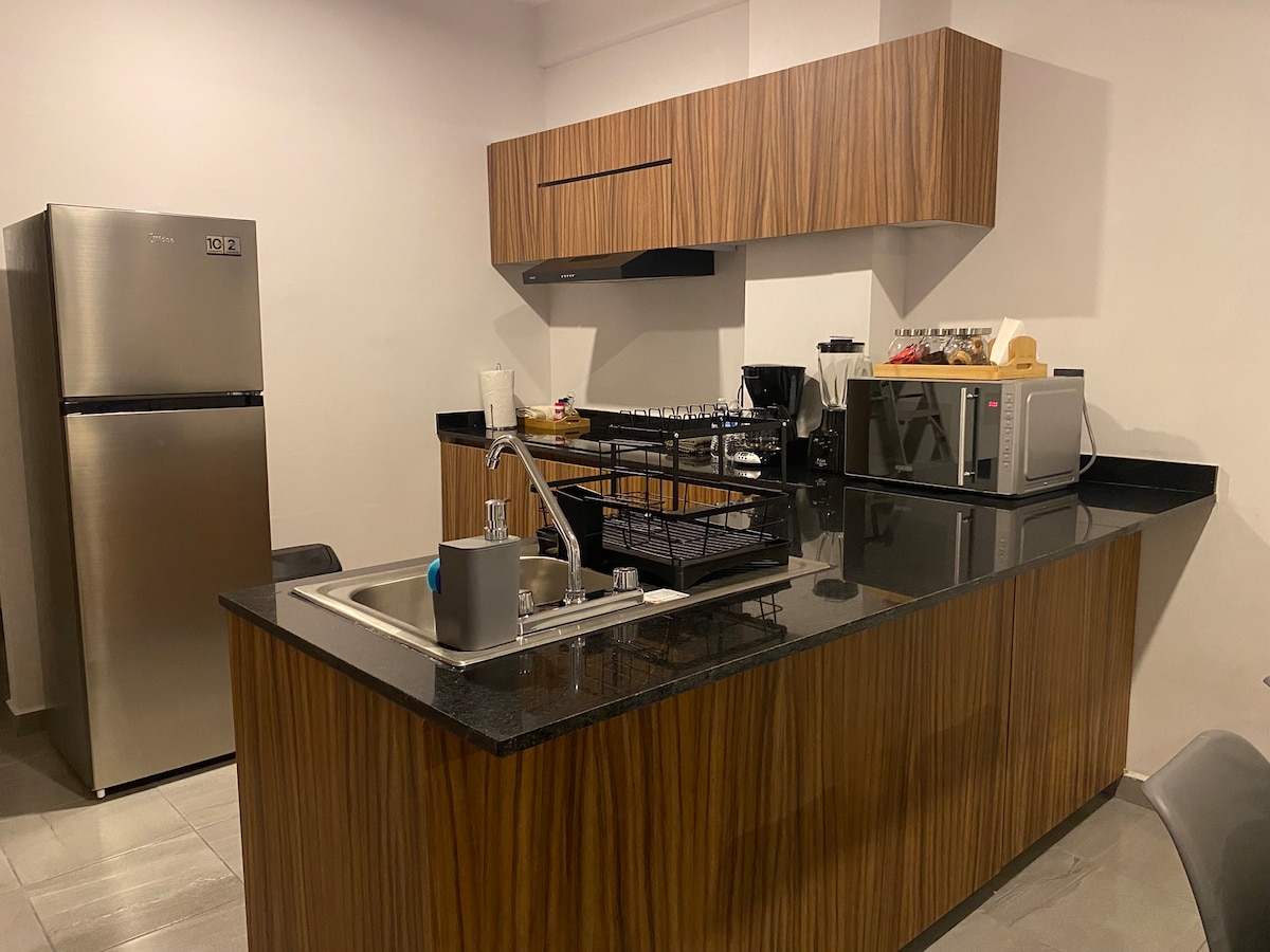 Enjoy a relaxing experience in our elegant and cozy oceanfront apartment; ideal for those looking to relax as our space offers comfort and serenity with a beautiful view. The interior design is intended to provide a sophisticated atmosphere, while every detail ensures that you feel at home. Perfect for couples, families, or travelers looking for a quiet space with all the modern amenities.