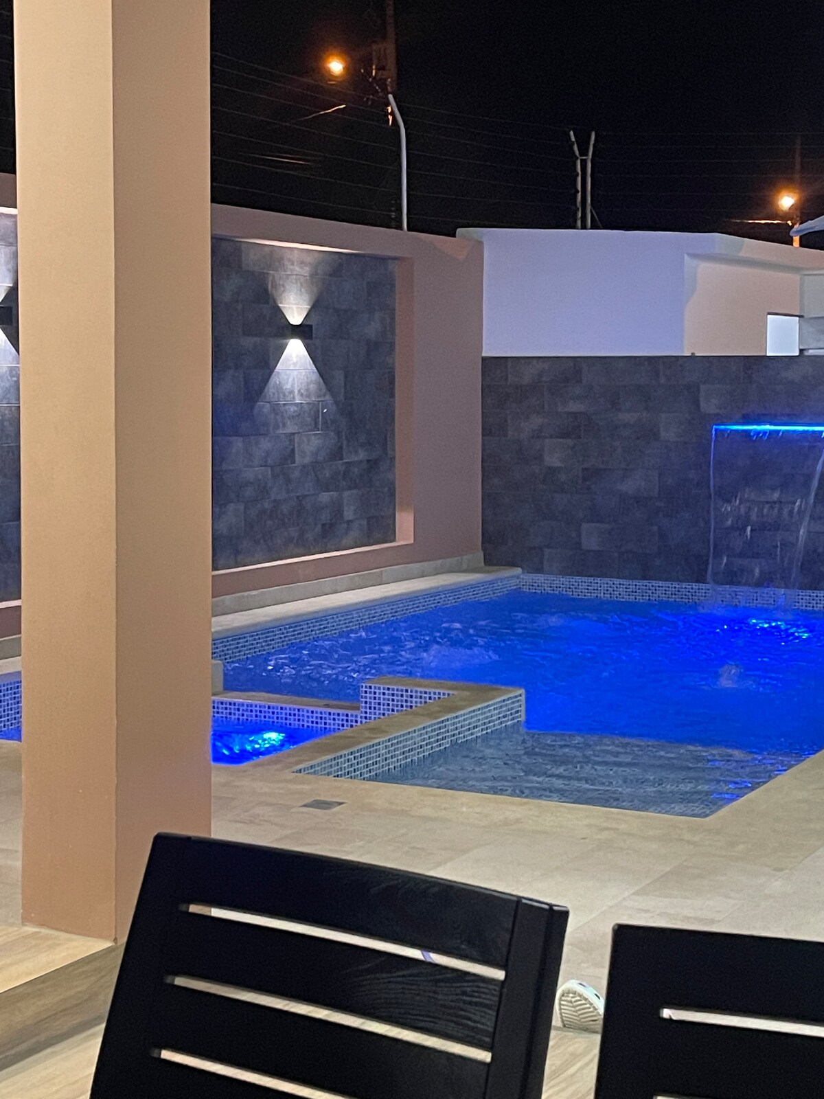 Enjoy unforgettable holidays in this fully furnished beachfront house with a private pool and jacuzzi. Perfect for families or groups of friends — and yes, pets are welcome! 🐾 ✨ Features: • Spacious terrace with pergola and ocean view • Private pool with jacuzzi • Bathroom in every room • TV, WiFi, and hot water • Air conditioning (splits) in bedrooms • Private parking and 24/7 security with cameras • Bright beach-style decor