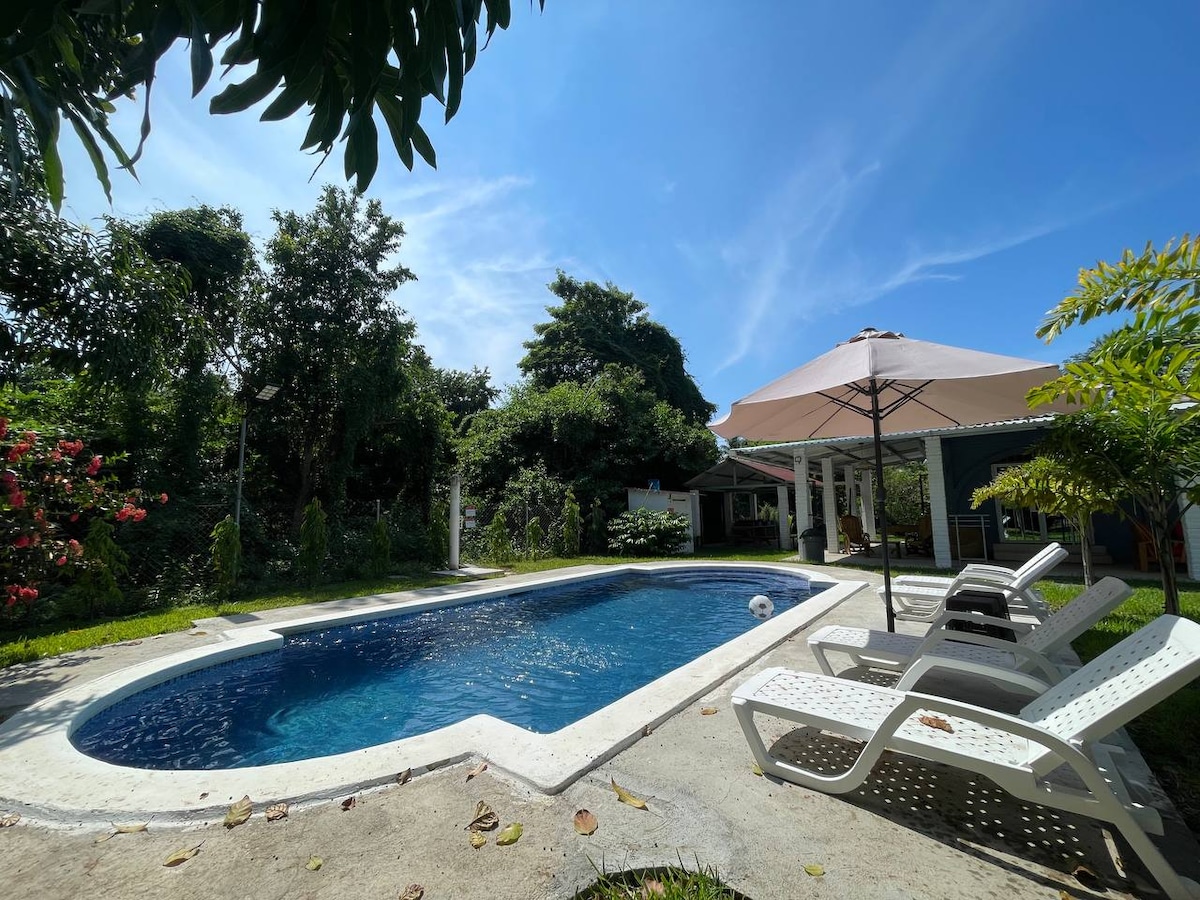 Enjoy a beautiful sunset at the beach Family accommodation in comfortable home to rest and get out of the routine. The ranch has 2 bedrooms equipped with air conditioning, kitchen-dining room with basic utensils, a full bathroom inside Common area: Swimming pool, 2 showers outside, green areas, large parking lot, cosibo with hammocks and a kitchen outside for making asados. We are next to the beach just a 2 minute walk down community street.