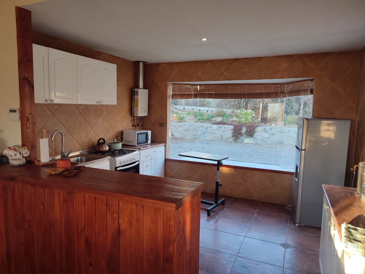 Rustic-modern private cabin located 2 blocks from Plaza de Pisco Elqui, close to restaurants and businesses. Private parking. 1 bedroom with private bathroom, 1 double bed (sheets, blankets, quilt, pillows and cushions). 1 nightstand, 1 lamp, 2 bedside rugs, sofa, restored antique furniture and 1 Bluetooth speaker. 1 electric heater for winter. Kitchen, dishwasher and minibar on the terrace (pots, dishes, cutlery, kettle, etc.) and charcoal grill. There is a lot of vegetation around.