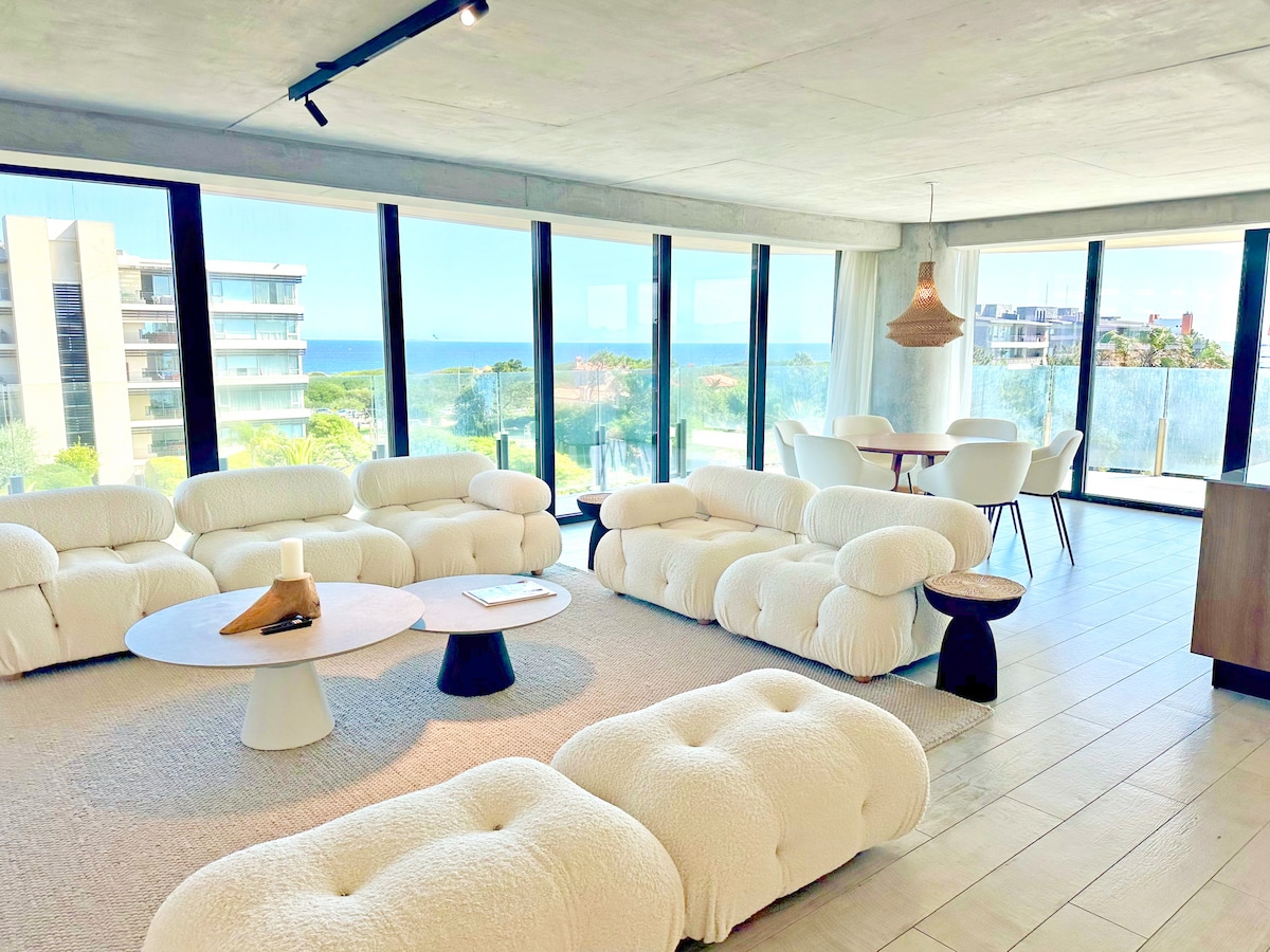 Spectacular apartment in Punta Ballena on the seafront. Next to Casa Pueblo, house and museum of the artist Carlos Páez Vilaró. It has 2 en-suite bedrooms, an integrated kitchen and dining room, a living room and a large terrace. Air conditioning and automatic blinds. Sheets, towels, beach chairs, and umbrella included. Optional maid service at an extra cost. Optional bicycles at an additional cost.