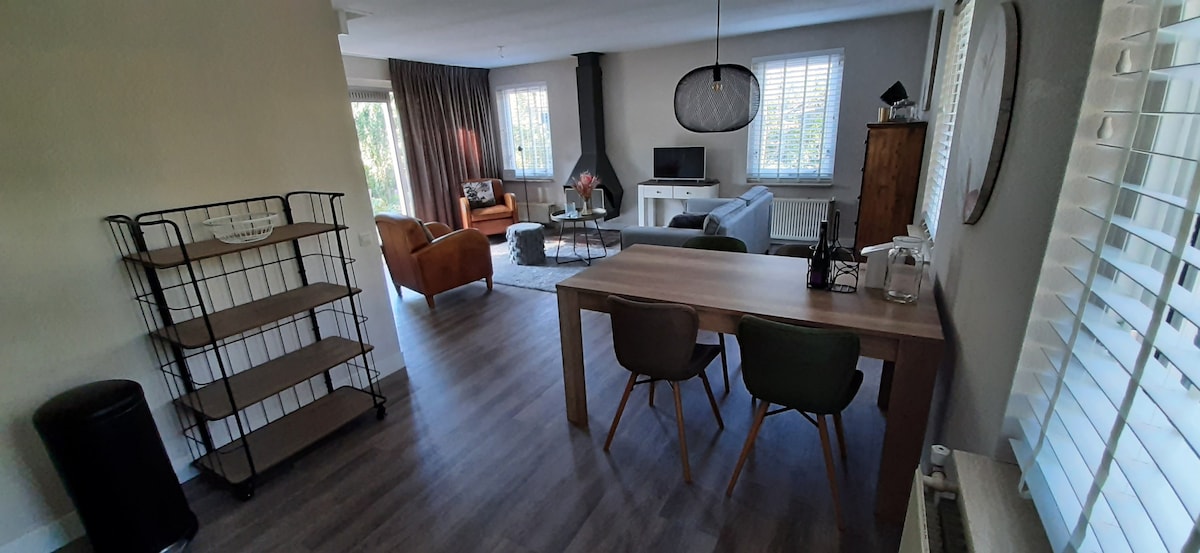 Escape to our peaceful, dog-friendly forest home with serene lake views from a stylish veranda. This detached retreat comfortably fits 4–5 guests, perfect for relaxing couples and families. Enjoy a private, spacious, fully fenced garden—ideal for kids and dogs—plus direct access to nature trails, sand dunes, and park amenities like a pool and an on-site restaurant. A cozy, stylish getaway with comfy beds, a fully equipped kitchen, fast WiFi, and A/C. Perfect for walking and cycling.