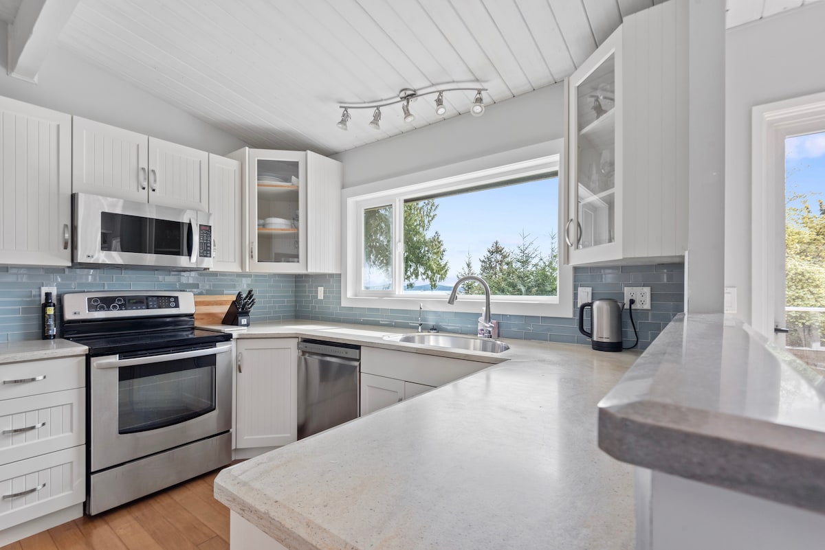 This bright and beautiful suite sits directly on the ocean with access to our dock. Newly updated with stunning views and peaceful surroundings. Under 30 minutes to Victoria's City Centre, and only a 10-15 minute drive to the world famous Butchart Gardens. This place makes you feel like you’re miles away yet conveniently close to everything this amazing city has to offer. *Please note that a new house is being built next door, so there may be residential construction noise during the day.