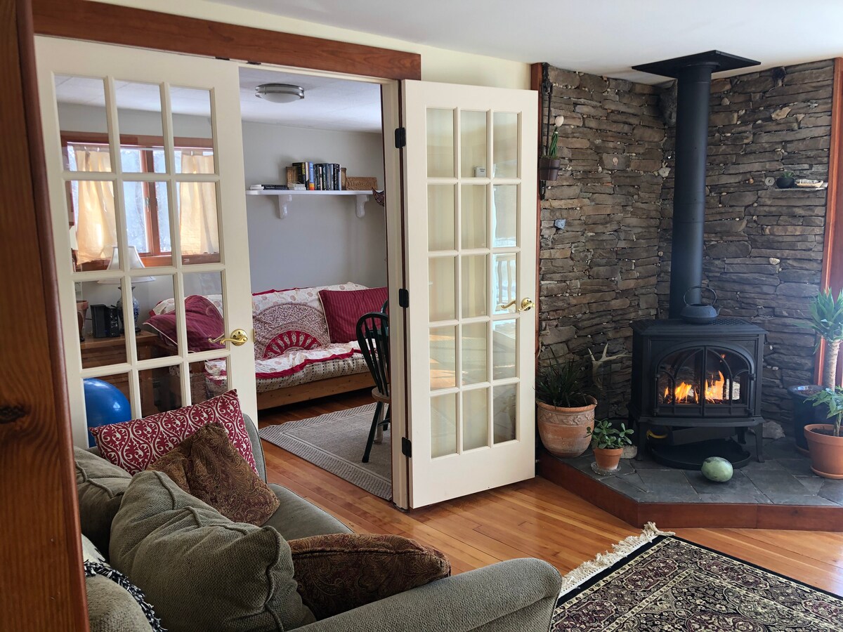 Our cozy little cottage is tucked away adjacent to the woods. This single floor 650sf apartment is a perfect place to unwind, build a bonfire, & enjoy the nature that surrounds you. Wake up in the morning to watch deer while enjoying your coffee on the porch. Main St. Tannersville is only an 8 min walk; with its nice selection of restaurants & shops. Hunter Mountain & Kaaterskill Falls are within a 10 min drive . Woodstock, Saugertise, Windham, Catskill & Kingston are within a 35 min drive.