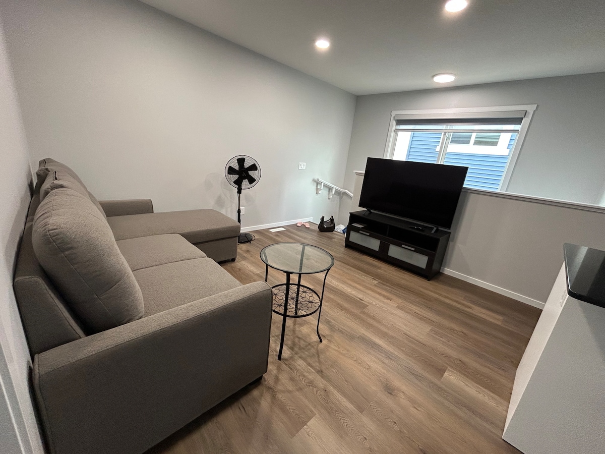 Cozy One-Bedroom Suite Minutes from the Airport. Welcome to your newly build guest suite home away from home! This comfortable one-bedroom suite offers a peaceful retreat just minutes from the airport. Perfect for business travelers, layovers, or anyone seeking convenience and comfort. Need extra space? No worries- we-ve got you covered with an extra sofa bed that easily accommodate additional guests • 17 MIN YEG AIRPORT • 29 MIN WEST EDMONTON MALL • 29 MIN DOWNTOWN.