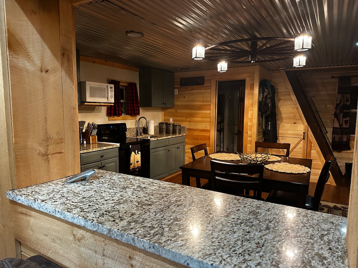 Welcome to the Hideaway Cabin, where you can unwind in the embrace of nature. Here, you can sizzle your favorites on the grill, lounge in the Adirondack chairs on the balcony, or simply relax indoors. Come evening, gather by the firepit on the porch to watch the fireflies dance or relax in the hot tub on the back porch. It's the ideal blend of natural serenity and homely comfort. In the winter, cozy up by the woodstove in the living room and catch up on your favorite TV shows.