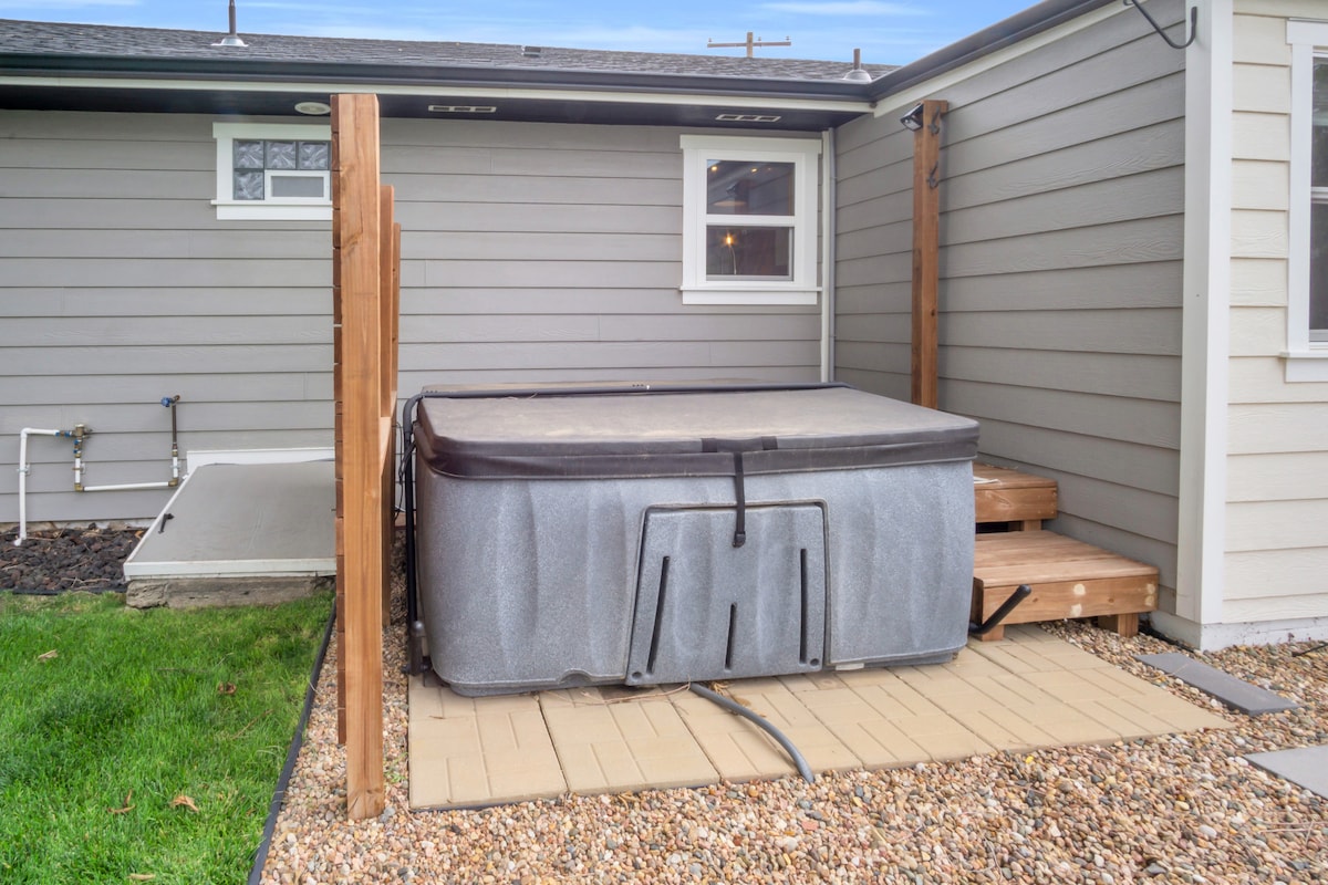 Hot tub, beautiful outdoor space, all new