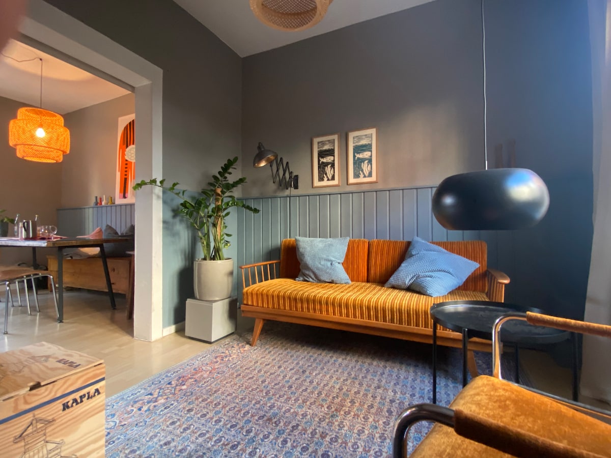 A stylish and lovingly furnished apartment plus balcony and roof terrace. We love having guests and want them to feel comfortable with us. The apartment is intended for two people with its small, cozy bedroom (140 cm x 200 cm bed). One more person or two children can be accommodated on a sofa bed (120 cm x 200 cm).