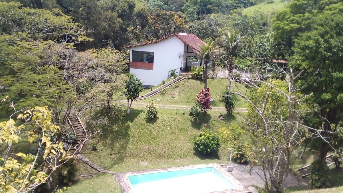 Take the whole family to this great place with plenty of room to have fun. Very green, quiet place, near the Centre and 20 minutes from Miguel Pereira and Vassouras. Friozinho da Serra even in the summer, a great place to enjoy with the Family and Friends, be it a holiday or a weekend of celebration, you can enjoy a delicious pool, several future trees lawn to run, play or meditate around the house, and a lot of trees and kills to explore.