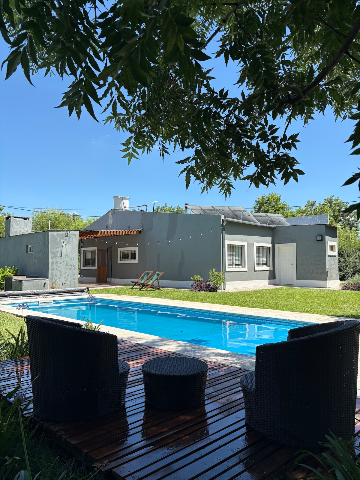 Discover this oasis of peace and natural beauty 🌿 just 15 minutes from Gualeguaychú🚗, very close to the Big Baths (7 minutes)💧. 🏡 The holiday home offers: 🛏️ 3 bedrooms with double beds, including a master with suite bathroom 🚿 🍳 Full kitchen with everything you need for your meals Cozy 🔥 Dining Room with Fireplace 500m² 🌳 patio with pool🏊♀️, metegol ⚽ and breathtaking views of the countryside 🌾