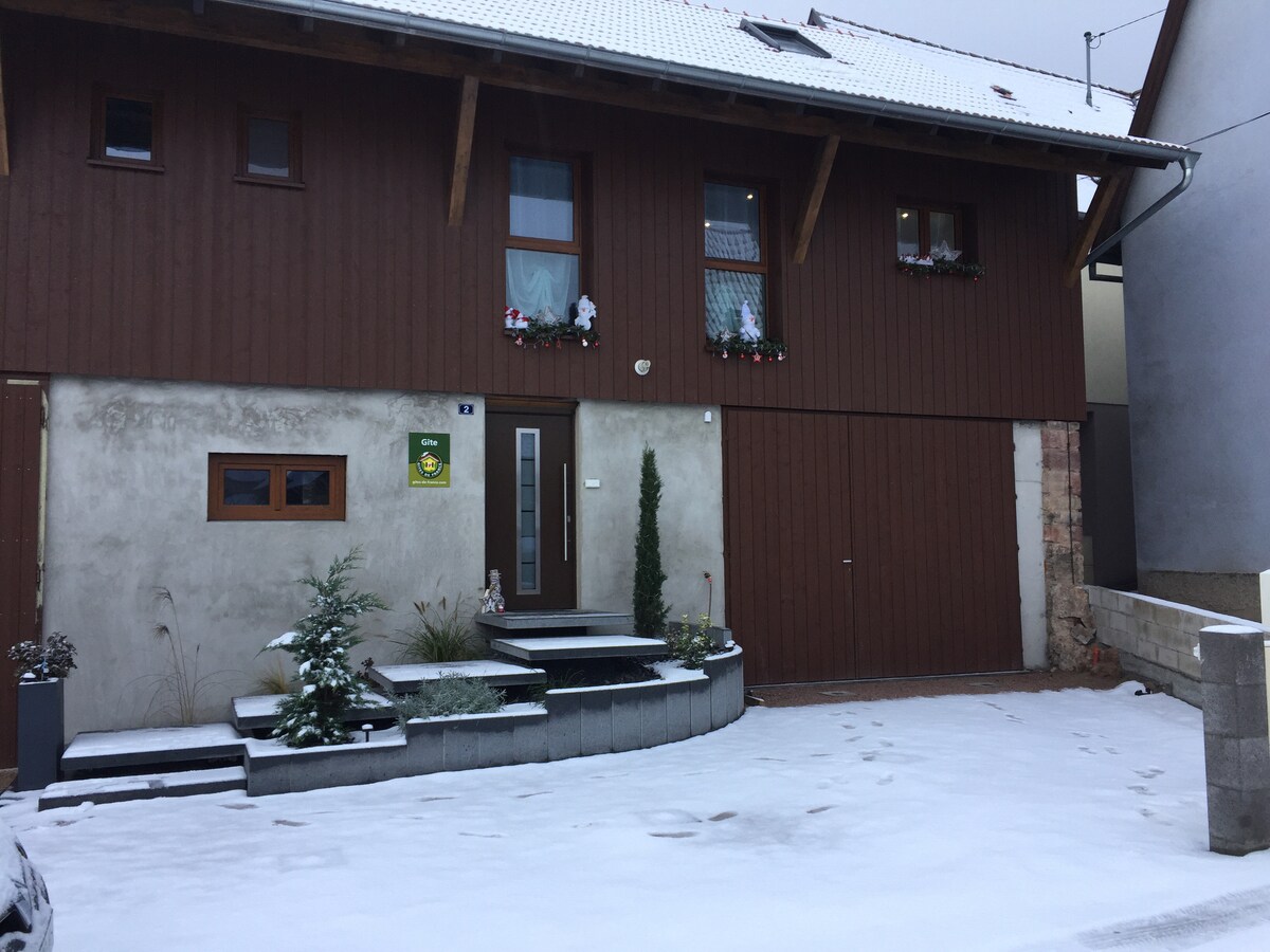 Au cœur du vignoble et à mi-chemin entre Strasbourg et Colmar, ancienne bâtisse viticole du XVIIIe entièrement rénovée. Dans ce charmant bâtiment à colombages, autrefois maison du vigneron, vous séjournerez dans un vaste duplex équipé pour 10 personnes. Doté de 4 chambres dont 2 suites parentales avec salle d'eau privative, d'un vaste salon, d'une cuisine entièrement équipée, d'une salle de bains, de 2 wc, d'une terrasse privative et d'un jardin joliment paysagée. Parking privatif.