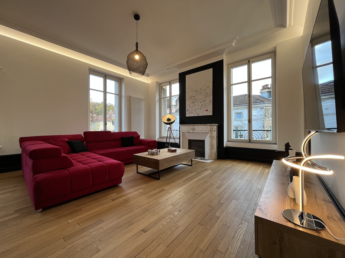 in the heart of the city in a bourgeois building with elevator, apartment of + 200 m² which combines the charm of the floors with modernity, a living room of nearly 80 m², 3 bathrooms including 1 of more than 30 m², high-end hotel bedding, 3 bedrooms, it exudes a zen attitude, unique room on Epinal that will take you 35 minutes from Gérardmer and Nancy, treat yourself to a relaxing stay, parking is free on the street with possibilities of parking in the building