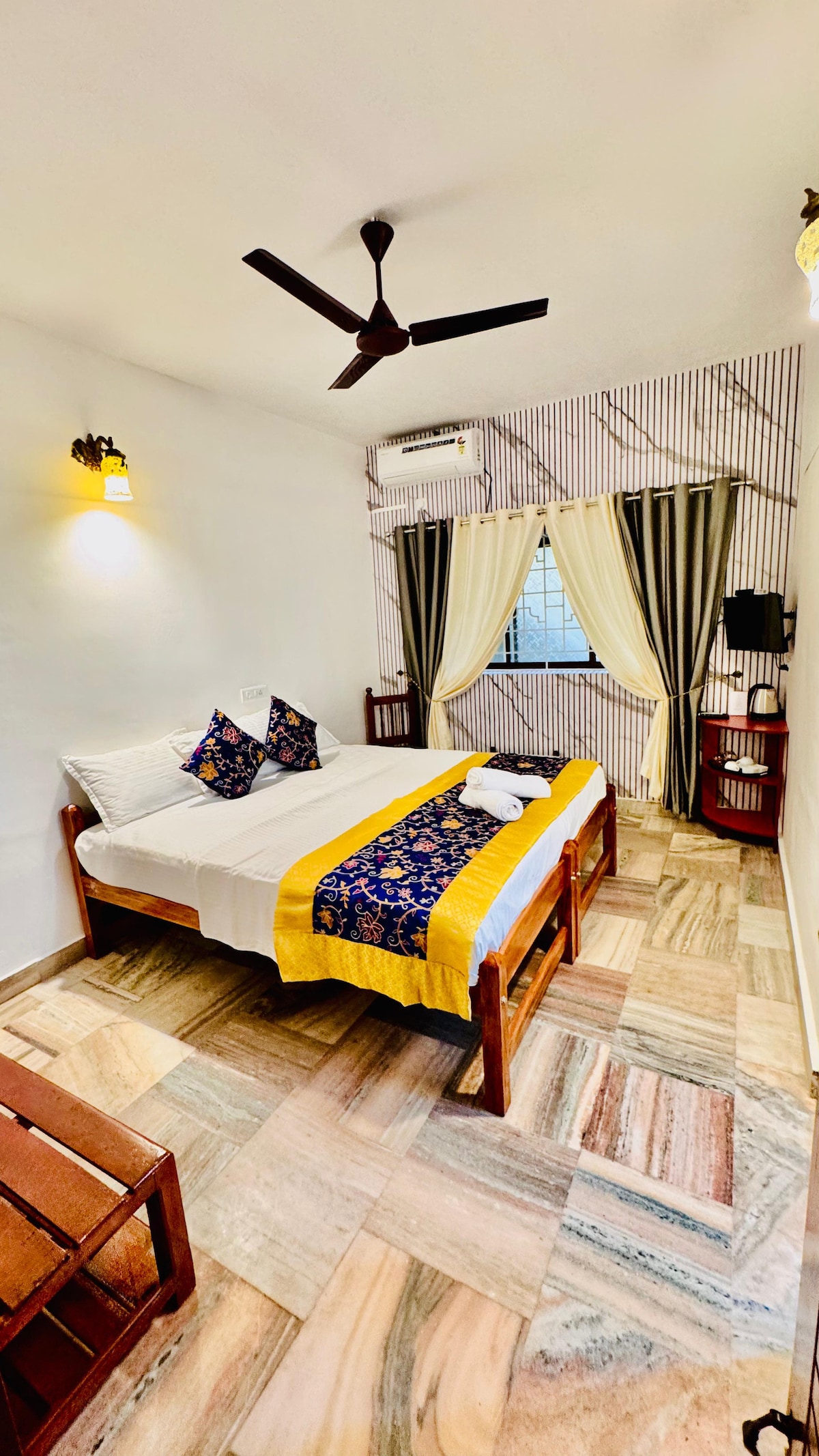 The Superior Room at The Old Courtyard Hotel offers spacious comfort with rich wooden floors, antique furniture, and high ceilings that reflect the charm of our 200-year-old heritage building. Choose between a double or twin beds, with mosquito nets and windows overlooking the courtyard or quiet lanes. Rooms include AC, tea/coffee maker, filtered water, Wi-Fi, and attached bathrooms with hot water and hair dryer.