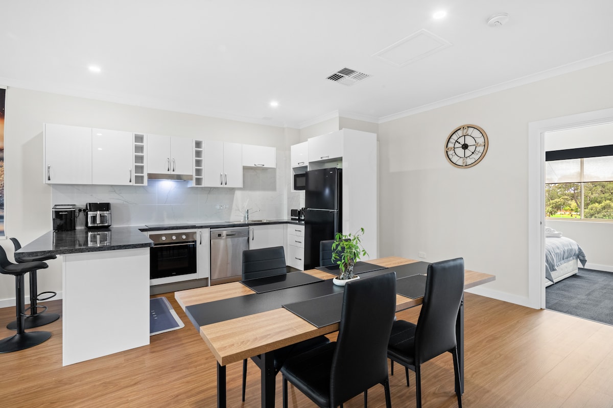 The home is across the road from a supermarket, bottle shop, restaurants, wellness spa & thriving beachside café. It is literally footsteps to shaded BBQ facilties, a playground and the white sands and rolling waves of Seascapes Beach. Stylish home perfectly suited for corporates, singles, couples or large families. Modern, luxury designer finishes, with brand new furnishings & appliances inspired by a beach lifestyle. Very spacious rooms for up to 8 guests in a fabulous beachside location.
