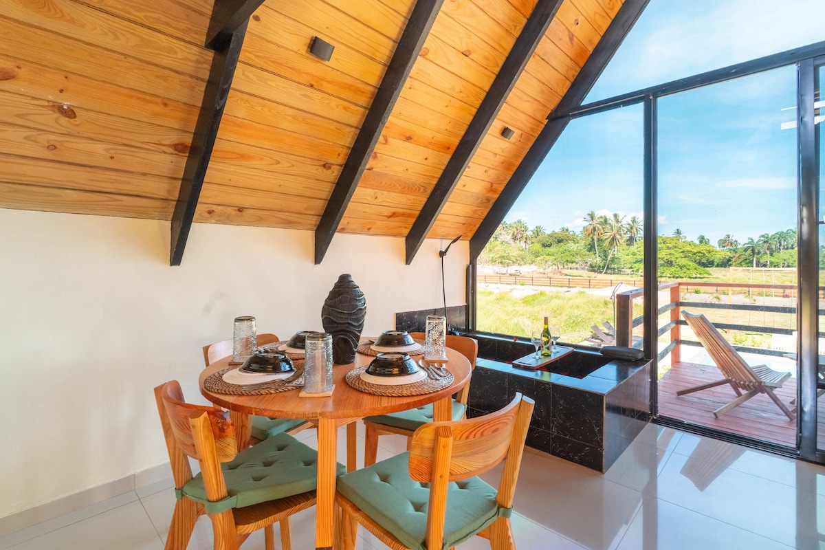 Bienvenidos a nuestro refugio tranquilo rodeado de naturaleza. Cuenta con piscina con cómodas sillas de sol y disfruta también de una bañera ideal para desconectar. Columpios, un gazebo con mesa de billar para compartir en familia o con amigos. A solo 45 minutos de Río San Juan, podrás explorar Playa Grande, vivir la aventura en Laguna Gri-Gri y descubrir lugares como el Parque Nacional El Choco yCuevas de Cabarete. Además, encontrarás excelentes restaurantes como, Ola River y D’ Papio.
