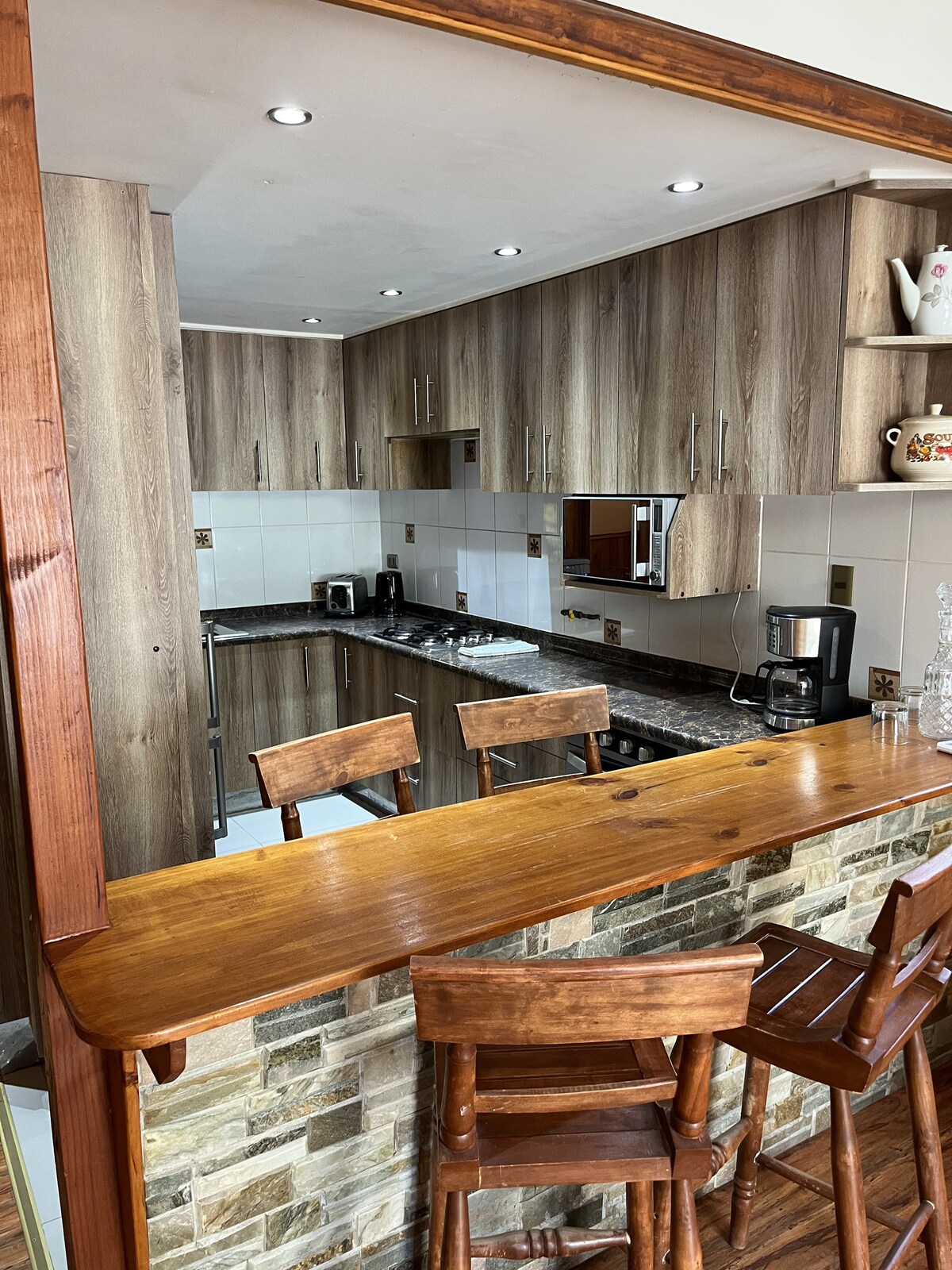 Stone house in Lo Barnechea, on the way to Farellones, 25 km from the ski resorts La Parva, Valle Nevado and El Colorado. Next to the Mapocho River, overlooking the mountain and surrounded by a native forest park. Equipped kitchen, coffee maker, wifi, basic services and terrace with grill. 1 km from Cerro Provincia and 5 km from horseback riding. “Quiet, perfect for disconnecting, with adorable dogs,” guests say. Ideal for resting with the sound of the river.