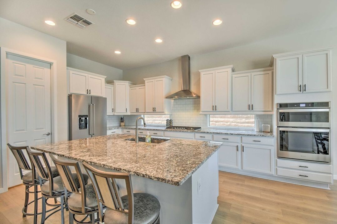 Nestled in Goodyear, Arizona’s private Estrella Mountain Ranch community, Casa Polaris is a 3 bedroom, 2 bath pool home offering 1600+ sq. feet of living, gathering & recreation space. Enjoy the outdoors while you float in the private pool, fire up the backyard BBQ grill and fire pit or take to the nearby trails. Belly up to the barstools in the fully outfitted kitchen, catch your favorite sports or binge-worthy shows on the 75-inch TV or take your Zoom calls in the designated workspace.