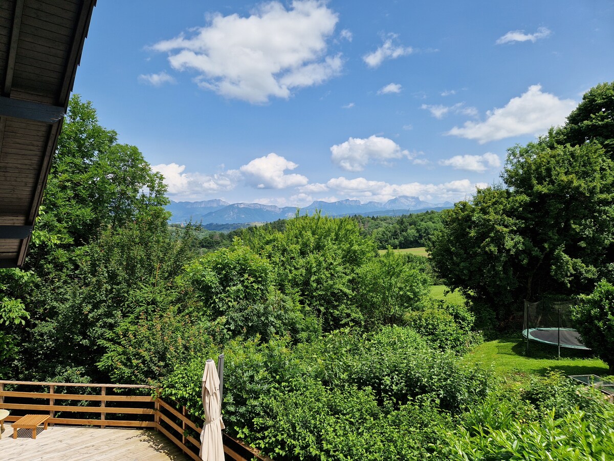 Modern detached house with mountain view – Quiet and comfortable, 35 min from Geneva and 20 min from Annecy Welcome to our 92 m² family home, located in a quiet and green countryside village with private garden. Ideal for families, friends or business trips, it accommodates up to 6 adults and 1 baby. Nearby: Lake Annecy, Gorges du Fier, hiking, old Annecy, Savoyard markets. Shops 5 min drive.