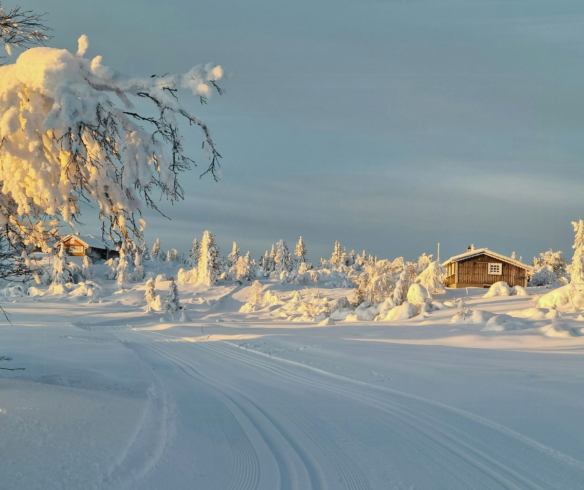 Fresh air and peaceful! Large and unspoiled country estate in the Norwegian mountains. Only 3 hours from Oslo. Here you can go skiing, sledding, hiking in the forest, cycling, fishing and swimming. Free use of the terrain down to the water by rowboat. Road all the way. Electricity, water, bath, shower, toilet, sauna, fireplace, new and well-equipped kitchen and several wood stoves. Just enjoy and relax. 5G WI-FI throughout the cabin TV with Chromecast. Lots of games and books available. 25 minutes to the nearest alpine resort.