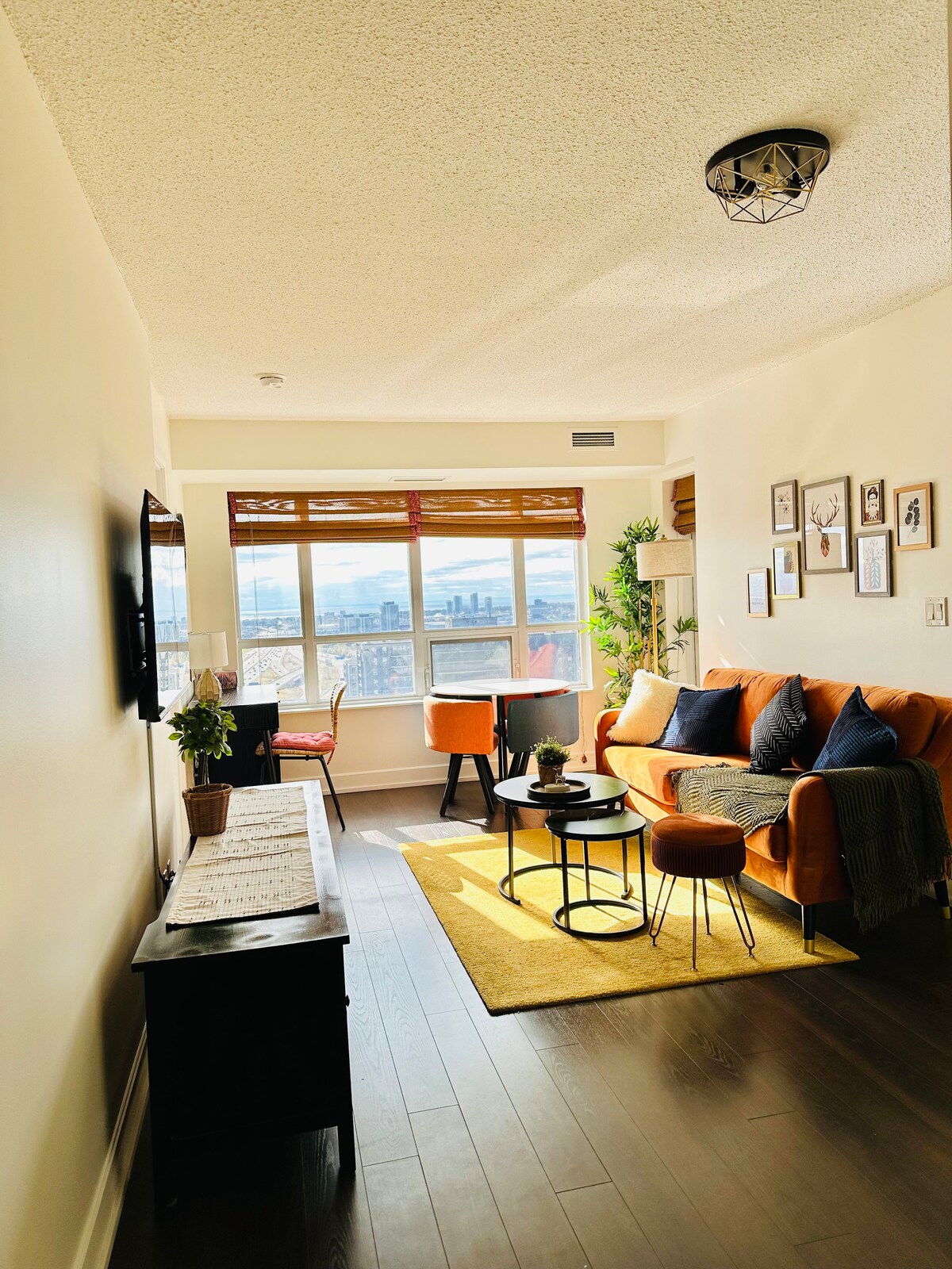 Welcome to our modern & luxurious corner penthouse! Stylishly designed with lush greenery and upscale touches, this bright space offers comfort, elegance, and a relaxed tropical vibe. Take in stunning panoramic city views and unwind with premium amenities including an outdoor pool, hot tub, and steam room sauna. Just a 15-min drive to downtown. Public transit at the doorstep. 10-min drive to Rogers Stadium. Perfect for discerning guests seeking an elevated stay in Toronto’s vibrant urban core