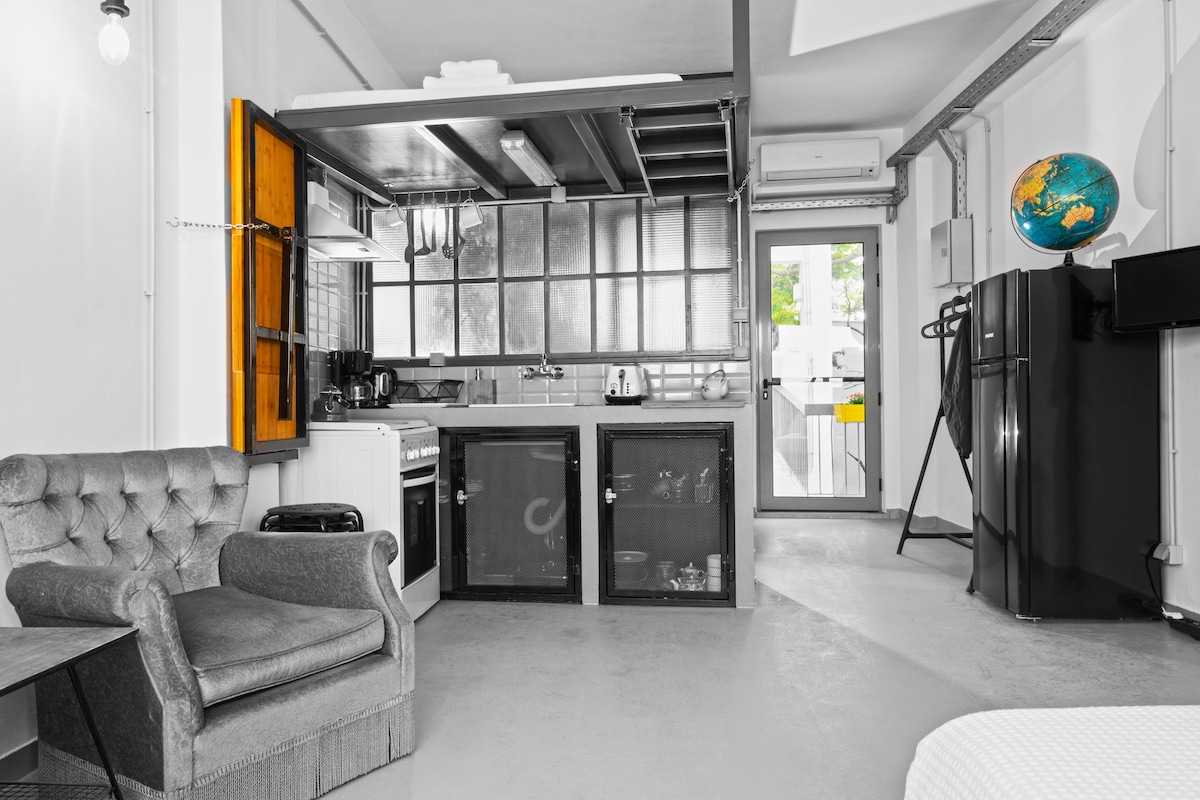 This unique loft with a vintage aesthetic is located in the heart of Athens and offers a combination of modern comfort and retro charm. Access to the city's most famous spots, from archaeological sites to cafes, bars and shops, is very easy, as they are just a few minutes' walk away. The place is fully equipped for a comfortable stay, while maintaining the romantic and nostalgic atmosphere of bygone times.