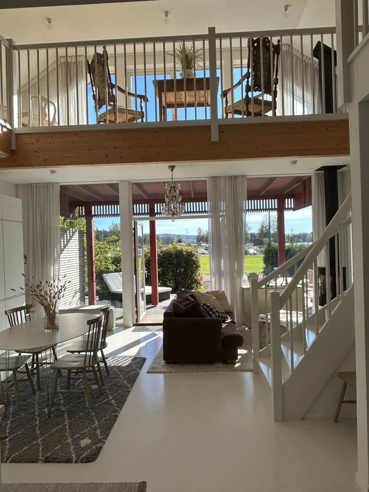 Welcome to a newly built (2021 with 2 apartments), charming house between Mora and Orsa with high standard for the whole family with regular pets or for BUSINESS in the heart of Dalarna. Wonderful views of Lake Orsa and the blue mountains. In the middle of nature, close to swimming, skiing experiences and adventures. Now the spa area is ready to use. The price is not included in the regular house rent. Although the house is located in a nice and quiet area, it is only 5 minutes to the hospital and 8 minutes to the shopping center.