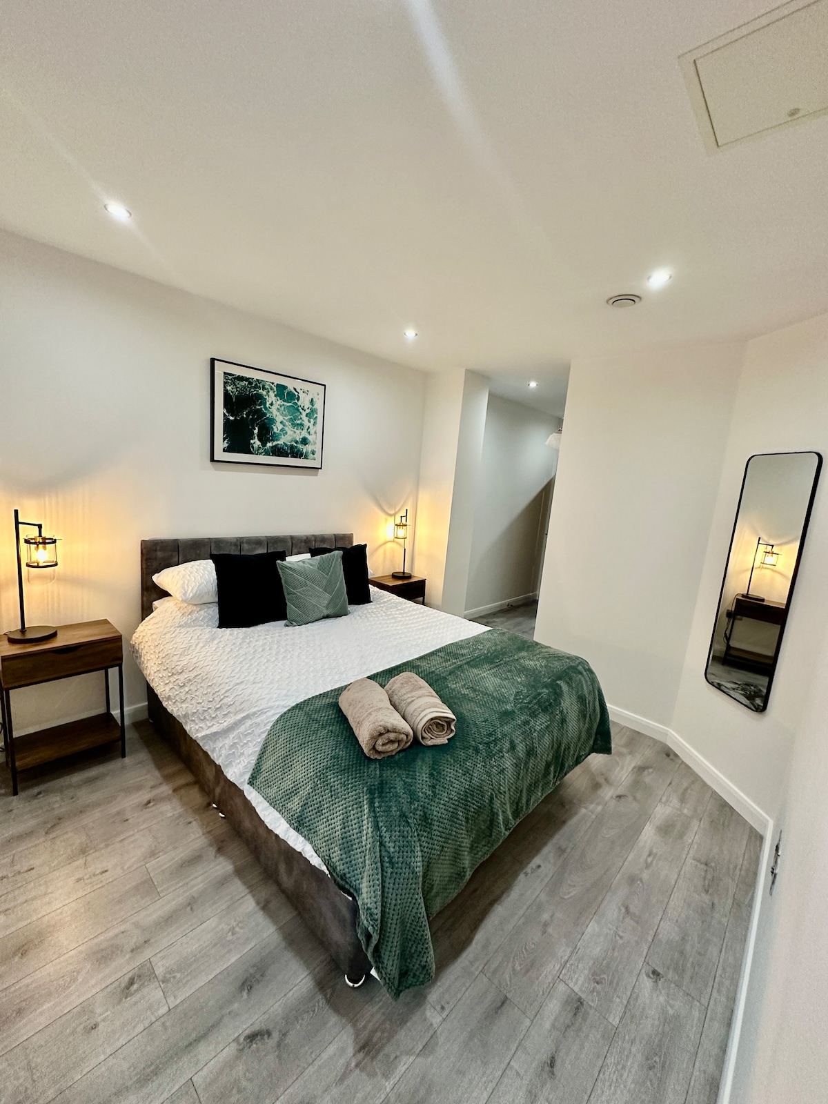 Welcome to our Luxury Retreat, the Emerald Suite. This stunning getaway is designed for both relaxation and exploration, being nestled in the heart of Leicester City Centre. Our spacious apartment is perfect for all guests seeking that extra bit of comfort when in Leicester City. It comfortably accommodates 4 people - featuring a luxury King-Size bed and a cosy double sofa bed in the living room. Our space is fully equipped with all amenities needed for an enjoyable stay!