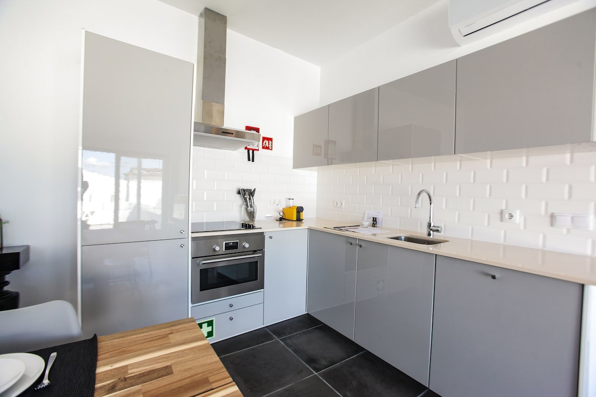 Throw open the door and walk into this calm and radiant apartment in the heart of Evora's historical centre. Sprawl out on the leather couch and find your center amid modern furnishings and high ceilings. Pamper yourself in the spacious marble double shower head walk-in and enjoy all the comfort of this gorgeous apartment within a 2 min walk from Giraldo's Square FREE PRIVATE PARKING 70 meters from the house. Fast and reliable INTERNET (fiber): SPEED: Download: 100 Mbs Upload: 100 Mbs