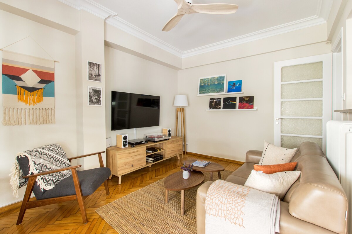 Experience a stylish 2BR, 1.5BA retreat—a bright, plant-filled oasis steps from Lykabettus Hill. Between upscale Kolonaki & lively Exarchia, enjoy boutique shopping, hidden gems & culture. - Prime central location - Artfully designed space with a beautiful terrace - 10-min walk to Panepistimio metro - Smart TV, AC, autonomous heating & hot water Perfect for: 🌿 Couples seeking a chic city escape 👥 Friends & families wanting a vibrant stay Enquire or Read below!