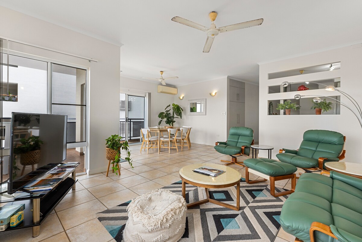 ☞ Pool ☞ Balcony w/ Harbor views ☞ Spacious and Comfortable 168 m² ☞ 2 Bedrooms w/ ensuite ☞ King & Queen beds ☞ Parking (onsite, 2 cars) 5✭“Robert’s place is a gem of an apartment. It has absolutely everything you need” ☞ 92 Mbps wifi ☞ Smart TV 55inch ☞ Fully equipped + stocked kitchen ☞ Self check-in ☞ Luggage storage available ☞ Washer + dryer ☞ Aircon 》Dynamic pricing - apartment for cost of hotel room 》20 Mins to airport 》Walking distance to The Mall, Casino, Cullen Bay & Mindle Markets
