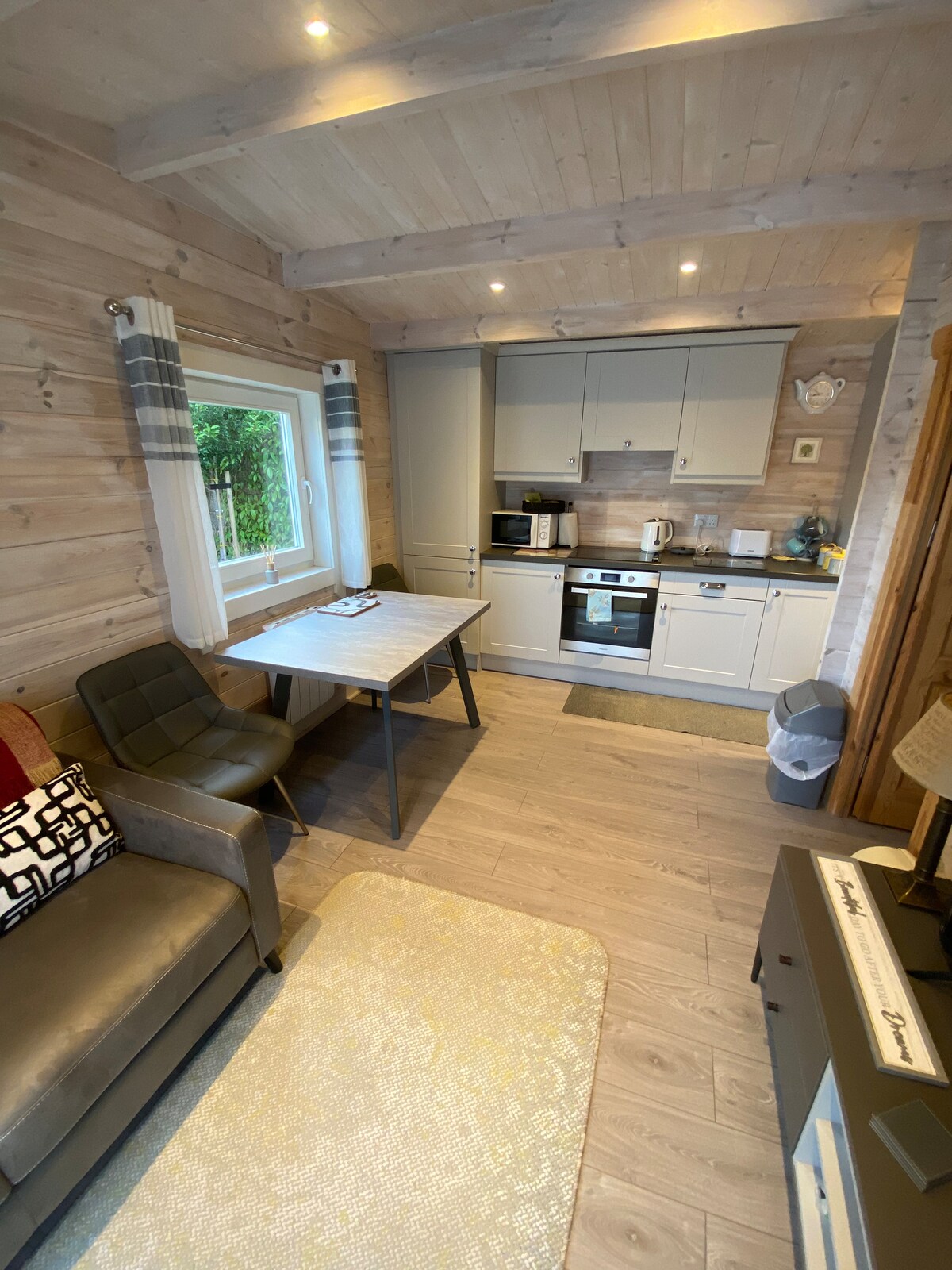 Our Luxury Lodges await those looking for a completely unique romantic escape. You will find yourself in a countryside setting but don't be fooled Killarney town is just 1.5km away. Your lodge boasts a spacious bedroom with King Size Bed (European) and bespoke furniture. There is a proper bathroom complete with power shower. The mini kitchen has everything from a hob to Nespresso machine. Private heated patio with BBQ is perfect for chilling in the evening with the sound of the River.