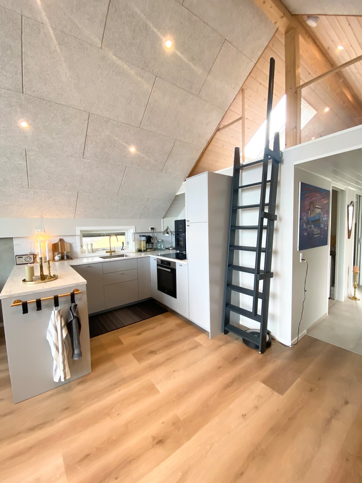 Relax in this new, modern and cozy boathouse with an ocean & mountain view & indoor sauna. Philips Hue lights in the open kitchen/living room area & the loft,so you can change color, dim & more from you mobile - 2 bedrooms +a loft with one airbed - Free fishing rods included in the rent so you can fish from the pier right outside (ask for them) - A public playground/sitting area is right outside for everyone to use at all times - Kollafjord has free bus routes to Torshavn every day except Sunday