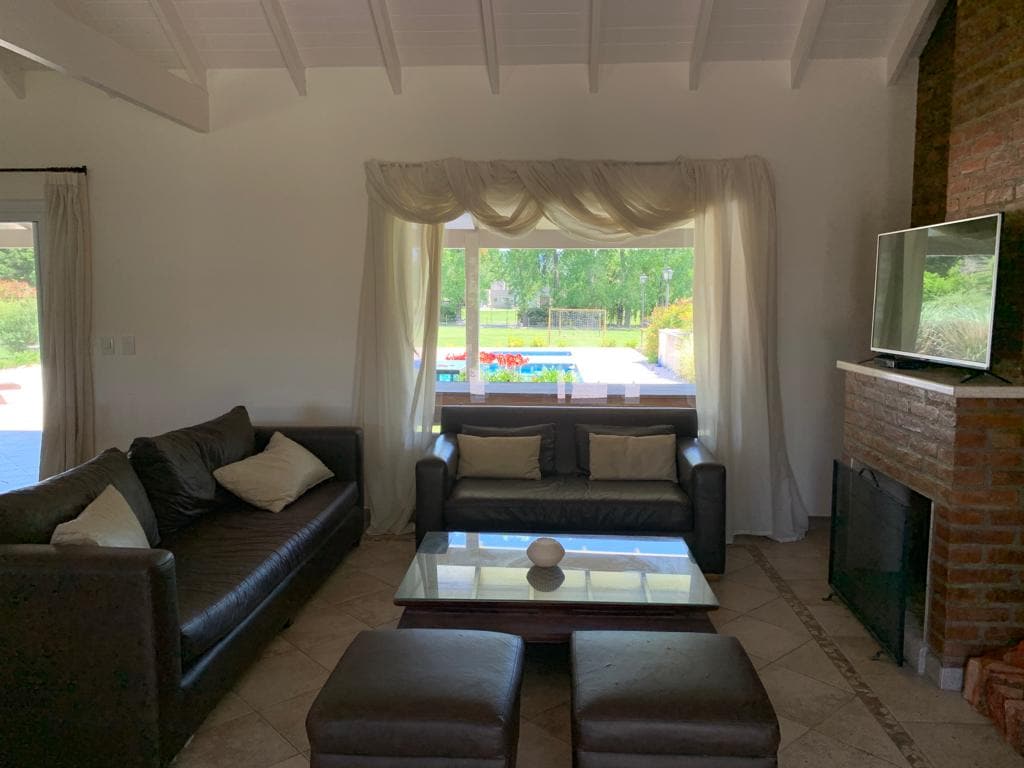 The house is located in a polo club within a gated community with security, 10 minutes from Pilar, 10 minutes from Luján and 50 minutes from the Federal Capital in non-peak time. It is a house with large and comfortable rooms that invite you to relax, unwind and enjoy comfortably. The garden was strategically set up over the years and has corners that allow you to enjoy it at any time of the day, taking advantage of the sun, flowers, trees and fruits in the different seasons of the year.