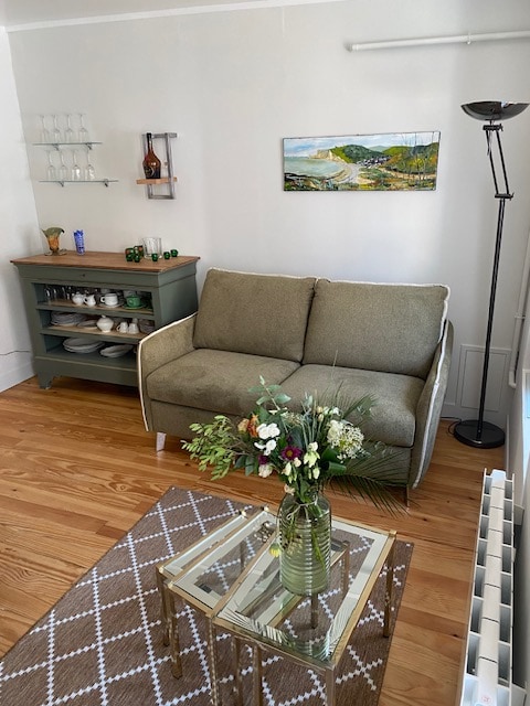 This beautiful refurbished apartment is ideally located just a short walk to the beach of Fécamp, it is located on the first floor in a condominium close to all amenities. This is a large studio with a bedroom space separated by a partition. Ideal for couples wishing to enjoy the sea air, the sea and the beach are visible from the apartment.