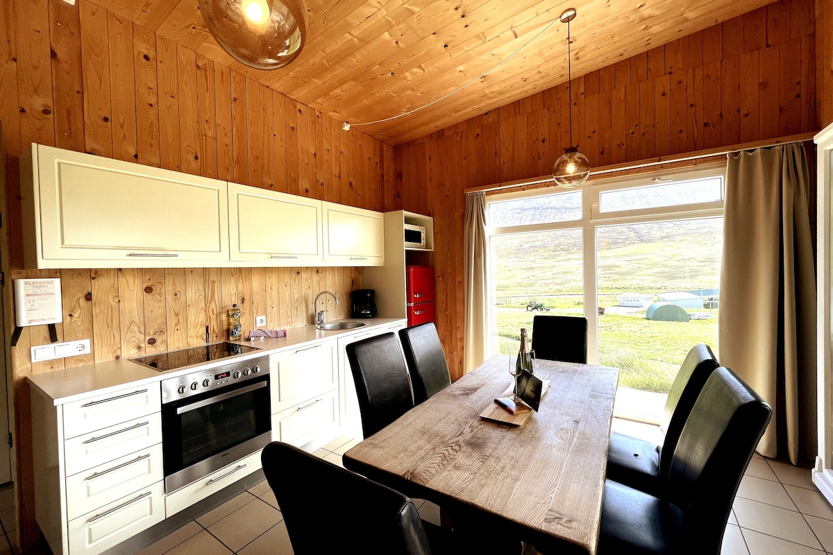 Welcome to your peaceful escape, only 3km from Ólafsfjörður - cozy cabin surrounded by beautiful mountains and nature. Perfect for families and small groups, this charming two-bedroom retreat sleeps up to 4 guests and offers comfort, privacy and unforgettable views. Enjoy panoramic views of the mountains and discover hiking trails, bird life and peaceful fjord waters just outside your door. Morning coffee with a mountain view and soaking in the hot tub under the stars.
