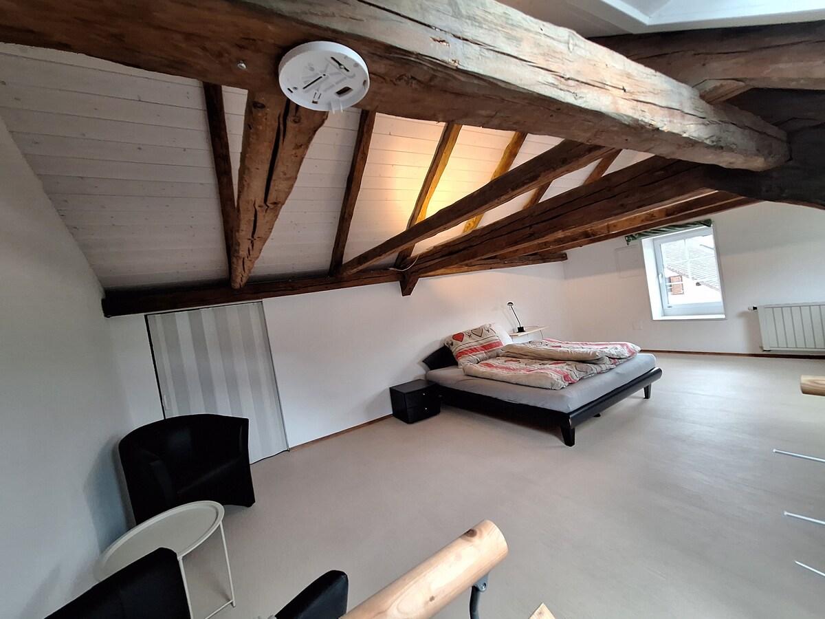 This unique place has a style all its own. It is new, well equipped with dishwasher, washing machine and a large balcony. Well located for skiing, some ski resorts can be reached in a short time. The bedroom has a box spring bed 180/200 cm for 2 people. For another 2 people, there is a sofa bed in the living room, so it would also be possible to book the loft with 4 people.