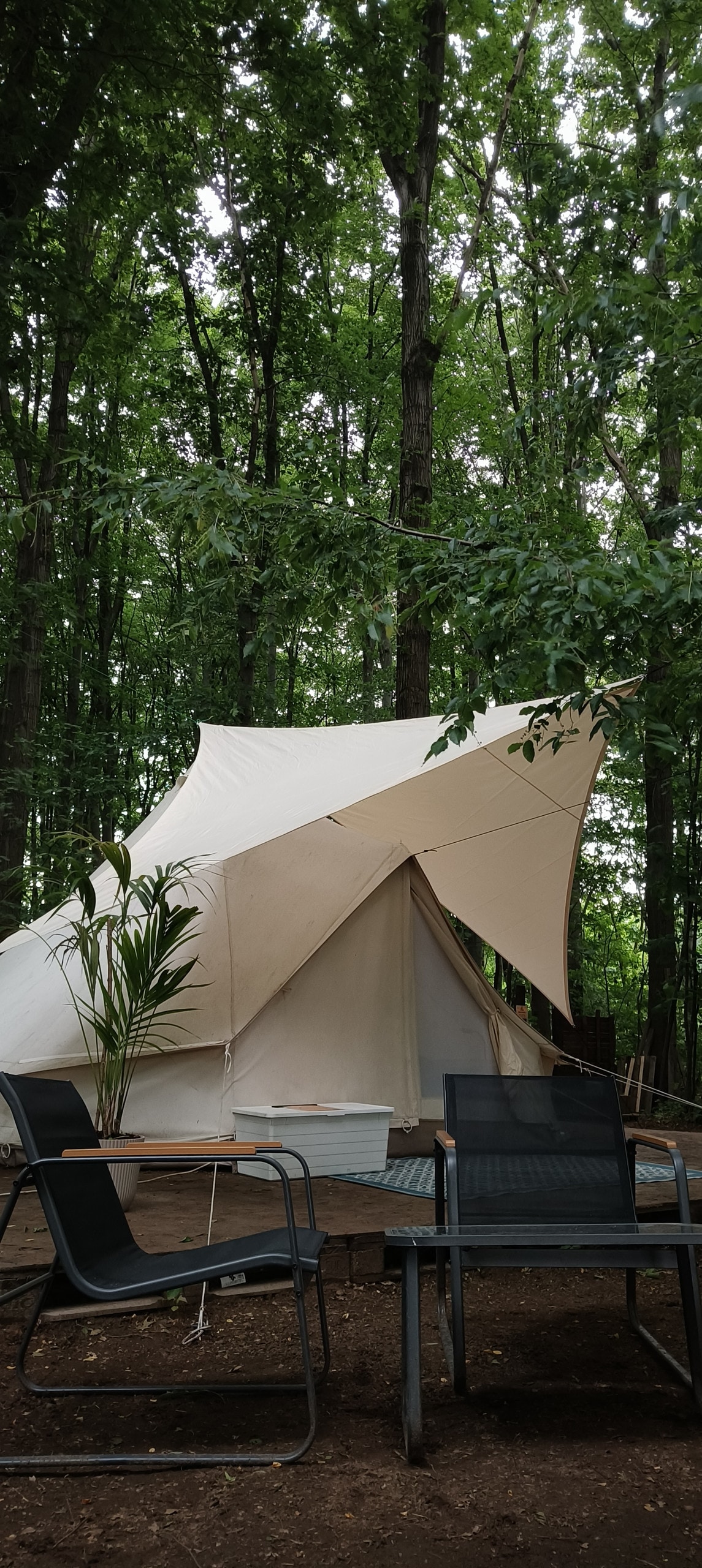 Verstopt tussen bos en de wijnranken van Wijndomein Haksberg: Hideaway: een stijlvolle glampingtent voor wie wil onthaasten in de natuur. Je slaapt in een comfortabel bed, geniet van een kampvuur onder de sterren én wordt wakker met ontbijt aan de tent. Elektriciteit, koffie, kampvuur met BBQ en buitensalon zijn aanwezig – rust verzekerd, luxe inbegrepen.