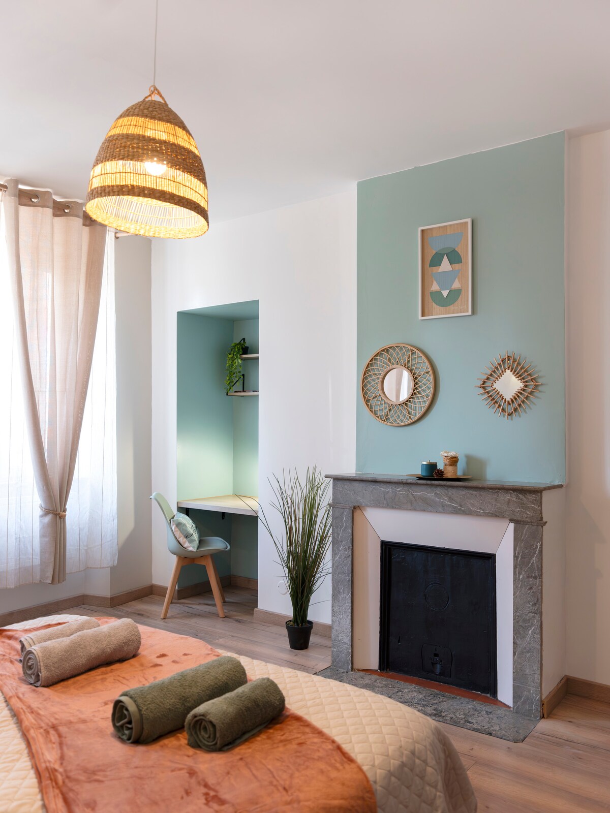 Welcome to this elegant and warm cocoon conveniently located close to the center and some tourist sites on foot. Enjoy the fully equipped kitchen, spacious bedroom, fiber optic internet, office space, refined Italian shower and electric fireplace for your warm relaxing moments. All freshly decorated by an interior designer. Treat yourself to a break of comfort and style: book now for a memorable stay!