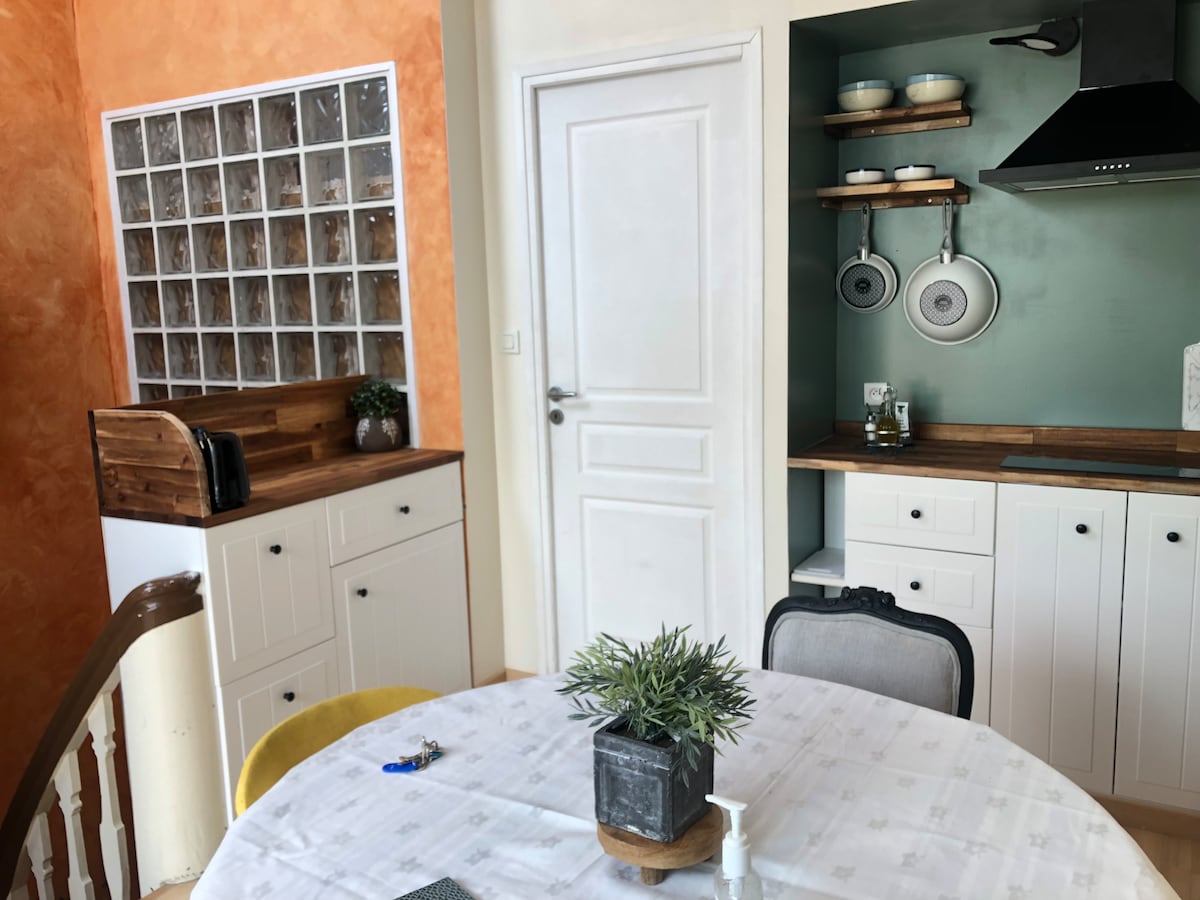 Come and discover this superb, warm, fully renovated 33 m2 studio, furnished with all comforts, with: - 1 equipped kitchen - 1 small living room - 1 bed 140 x 190, linens provided - 1 bathroom (towels provided) - Hairdryer - a microwave - Oven - Electric stove - Coffee maker The studio is located in the center of Sedan on a very quiet street. The castle is 500 meters away. SNCF train station 1 kilometer away. Free parking nearby the space Possibility to park bikes in the lobby which is secure