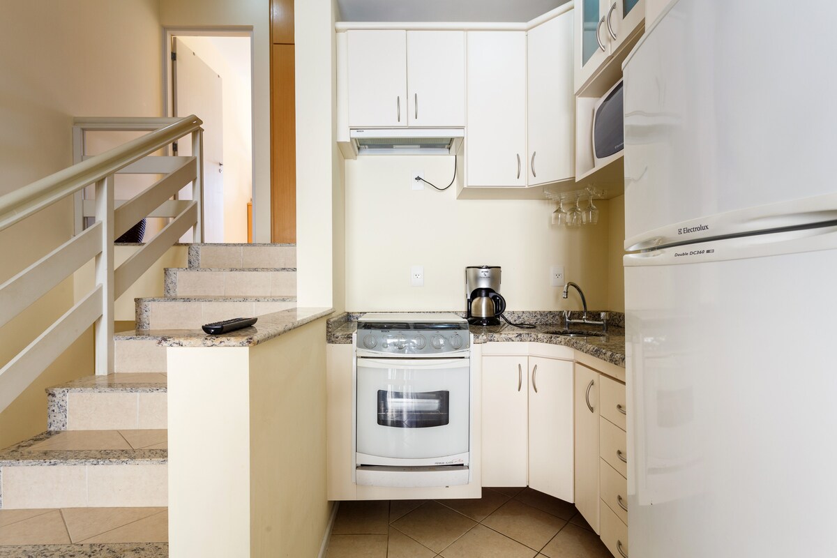 Discover the Loft of your dreams in Florianópolis! Just a 10-minute walk to the Events Center this charming and cozy space offers everything for a perfect stay: air conditioning, full kitchen, laundry, self check-in, Home-Office with monitor, ultra-fast internet and Netflix 24-hour covered garage ("gaveta") and doorman guarantee your safety. Close to everything: Cathedral, Public Market, bars and beaches. Comfort, practicality and unbeatable location await you! Enjoy a unique experience!