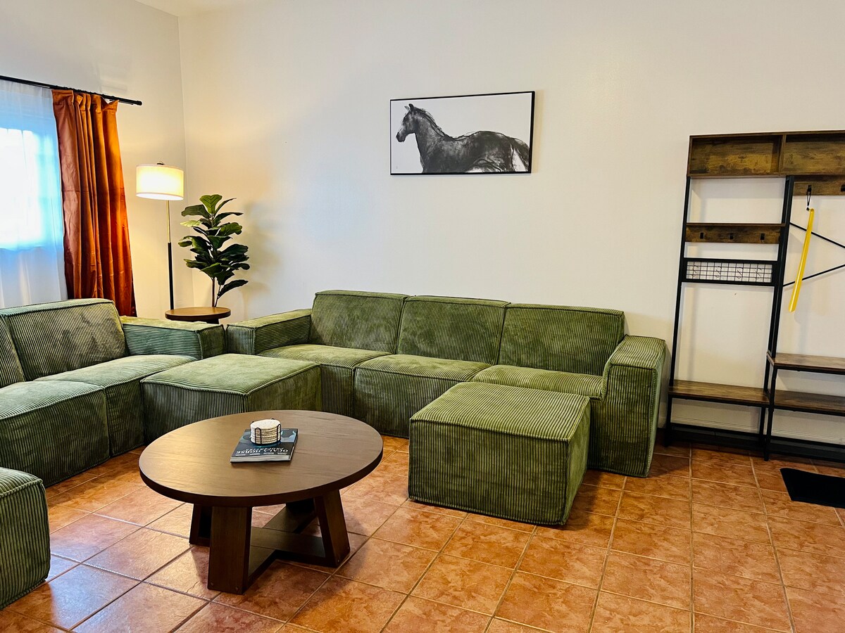 Enough room for your whole group in this spacious home right on the Santos Trails! Ocala is a wonderful town with lots to offer, but is also a great mid-point stay if you are planning to visit Orlando or the beaches. Ocala has many treasures waiting to be explored and we have highlighted 4 of them throughout the house! Whether you ride the Santos Trails, hike in the Ocala National Forest, kayak at Silver Springs or explore Ocala’s rich history of horses, we’d love to host you at Casa de Santos!