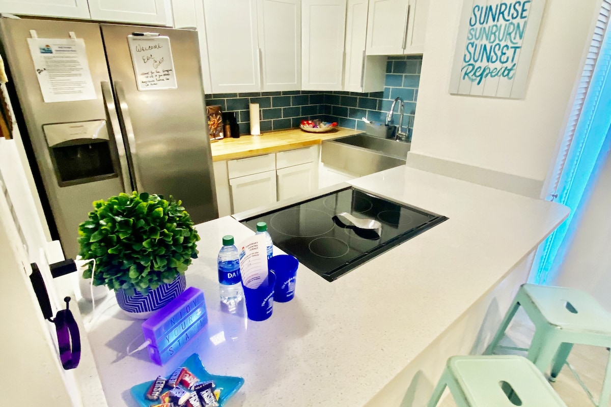 Newly renovated! - Welcome to The Oasis, a luxury beach studio at El Matador Condos on Okaloosa Island, Fort Walton Beach, FL. Be our guest at this beautifully decorated, clean, comfortable studio, ideal for small families, small groups, couples, singles, & business travelers. You'll have direct access to the private beach & all the amenities including a seasonally heated outdoor pool, Gulf view pool, hot tub, sauna, gym, tennis/pickleball & basketball court, BBQ areas, & a laundry room.