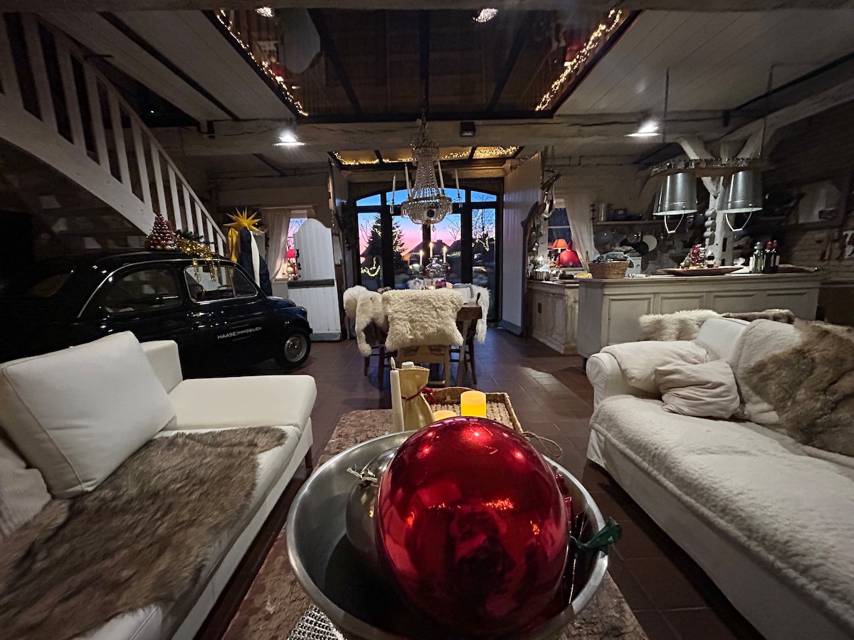 Experience a great holiday with us! You live in a historic courtyard building with all amenities. Plenty of space inside the house, in the play barn with theater stage or outside in the park-like garden give you plenty of opportunities for a relaxing holiday in any weather. If you want, you can visit us on our farm with dairy farming. Our farm is about 300 m away and is easily accessible via a footpath.
