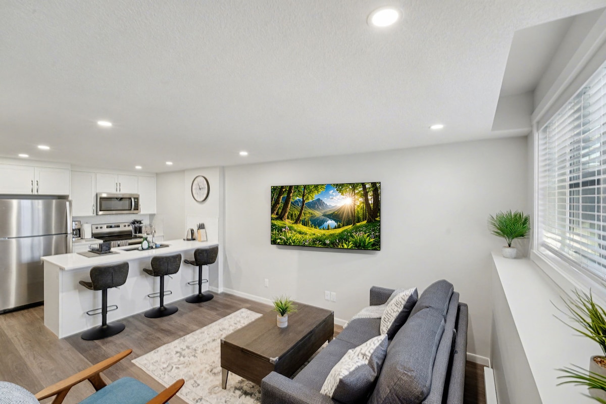 Experience comfortable living in the heart of Cranston's Riverstone. With 2 bedrooms, 3 beds, 2.5 bathrooms, this new home has everything you could want including a gas stove, natural gas BBQ, king beds in each room and a single day bed and sit-stand desk in the 2nd bedroom. It's perfect for short and long stays. • Ideal for families, couples, or business travellers • 5 minute drive to the South Health Campus Hospital We’re always glad to welcome guests who come back year after year!