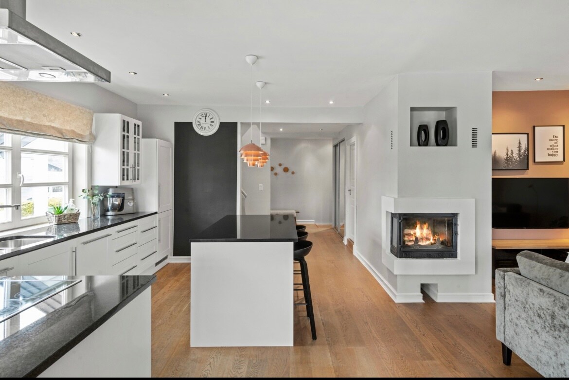 Welcome to a nice little house with lush apple garden and patio, only 15 minutes by bus from Oslo city center. The house is completely newly renovated and modernly furnished with a loft and a full four meters ceiling height. Here you can relax in pleasant surroundings both indoors and outdoors, and get a "cottage feeling" close to Oslo. There are heating cables in the floor, a large and cozy fireplace that heats and a rainfall shower in the bathroom. Outside there is a plot and patio of over 20m2 with barbecue, fire pan, kitchen garden and outdoor lighting.