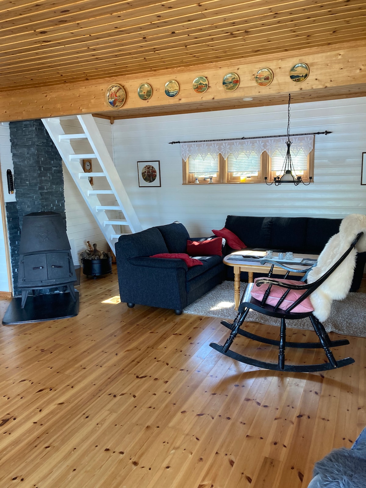Adr:Kommelhågveien 65 9419 Sørvik. The cabin is located at Storvann Syd, 25 min drive south of Harstad.ca 35 min from Evenes airport. There are two bedrooms with double beds on the main floor and double bed in the loft. The bathroom is furnished with Cinderella incineration toilet and Cinderella urinal, shower cubicle and sink . There is open living room/kitchen and in the living room there is TV. Have internet. There is no dishwasher or washing machine at the cabin. There is a private parking lot. The cabin is rented during the summer months,