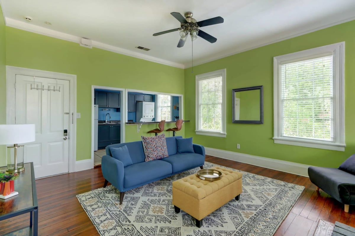 Experience Southern charm and timeless elegance in our lovely 2BR/1BA suite nestled in the heart of Historic Downtown Savannah. With warm hardwood floors, a modern kitchen perfect for cozy meals, and all the comforts of home, it’s an inviting retreat just steps from Forsyth Park. Bring your furry friend too—our dog-friendly welcome includes a $50 daily pet fee. Your enchanting Savannah getaway awaits!